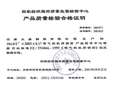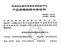 For the improvement of quality management , our company volunteer to send samples to the National Textile Facilities Quality Examining Center for test regularly every year. Our products are always given the eligible certificate.