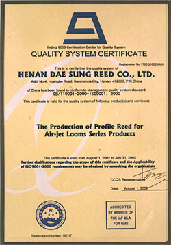 In Aug. 2001 our company was awarded the GB/T9001-2000-ISO9001:2000 certificate in Beijing.